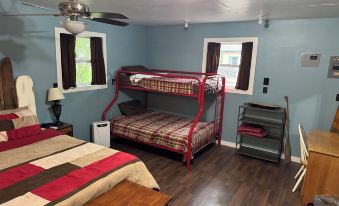 DETACHED bedroom with queen size bed, twin bunk bed over full, and living area, there is no bathroom in the detached bedroom.