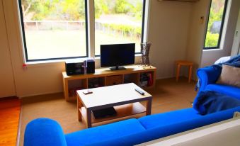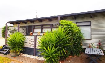 The Cottage has two bedrooms, the master with a queen bed, the second with a double bed and bunk bed, sleeping 6 in total. The living area has a small but fully functional kitchen, dining table and lounge area with a flat screen TV with DVD player. The unit has a reverse cycle air conditioner ensuring your year round comfort.