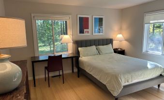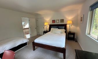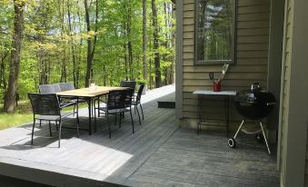 This roomy house is the best of both worlds: in a locale so quiet and woodsy, yet so close to great activities, restaurants, stores, and more.This was our third time staying at the house and we had just as much fun as our first two visits. The ping-pong table and foosball table provided a lot of fun, especially since the weather kept us indoors a bit.We enjoyed the local restaurants, especially The Roost, Hash, Ollie's, and Spy. And when we ate at the house, the kitchen was well stocked with with all the appliances and tools necessary to make a great meal--with a lovely dining room in which to enjoy it. One other big plus: The television was extremely easy to use and offered a wide variety of streaming services.