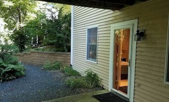 We are located about 1-1.5 miles west of Mayo Clinic. You'll find us located in a beautiful, quiet and secluded neighborhood. We have a private entrance, a staircase and path to your lovely hideaway. The wooded area behind our home has lots of wildlife. It is not uncommon to see deer in the backyard, as many as six at one time! Sometimes a group of turkeys will feed under our deck, you can watch them just outside the windows of your studio apartment. We are often told of how beautiful and peaceful it is here. There is a covered patio and furniture to relax on in the evenings.About pets:No pets allowed.About checkOut:Check out before 11:00 AM.About children:Adults only.About customRules:Please: No smoking on property. Thank you!.About checkIn:Check in after 4:00 PM.About smoking:Smoking is not permitted.About minBookingAge:Minimum age to rent: 19.About events:No events allowed.
