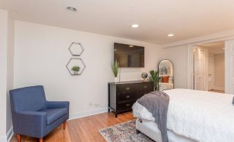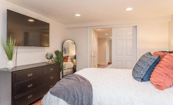 The bedroom spaces feature an upholstered queen bed, luxurious mattress and bedding. The living room features a sectional sofa and decorative chairs with a 75-inch smart TV so you can enjoy your favorite show or big game! TV includes Netflix, You-tube TV, HULU, and prime TV. There is also a large entryway space that features a sleeper sofa.
