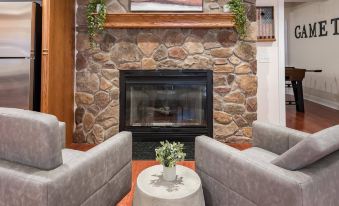 This luxurious spot features over 1200 sq feet of space with a large 2 bedroom and additional room with full pull-out sofa, fully equipped large kitchen (full size fridge and appliances), full size washer & dryer, bathroom with shower, Spacious living room, kitchen, gas fireplace, fire pit and sitting area. This beautiful space also features a game room with Shuffleboard, poker table, and Foosball. Outside, there is a beautiful pergola with solo stove and seating to enjoy the blissful evenings under the stars.