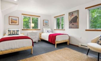 Head up to the second floor and you'll find a washer+dryer and plenty of toys, books, and games for kids. Both bedrooms are also on this level - one with 2 twins and the other with a king bed. The bedrooms are connected by the full bathroom which is a modern, newly renovated space with walk-in shower.