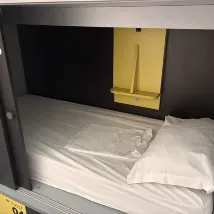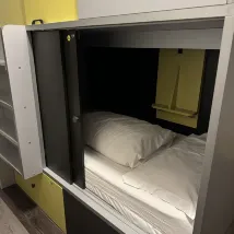 Условия проживания соответствуют цене. Поскольку кровати закрытые коробочного типа, вас не потревожат соседи по комнате, которые будут входить и выходить, когда вы спите, что очень здорово. Но лестница на верхнюю двухъярусную кровать была крутой и короткой, поэтому такому невысокому человеку, как я, приходилось придвигать стул к стене, чтобы подняться наверх и не упасть! Мне повезло встретиться с званым ужином. Кускус был восхитительным. Я отлично провел время! Хотя он и находится немного далеко от центрального вокзала, до всех близлежащих достопримечательностей довольно удобно добираться на метро или автобусе. Рядом находится снэк-бар, где можно быстро выпить кофе или легко пообедать по доступной цене.
