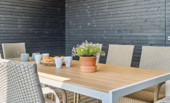 Single-family house, built in 2024. 75 m from the sea. Private: barbecue. In the house: washing machine, tumble dryer. Parking at the house. E-charging station. Grocery 2 km. The owner does not accept any youth groups. "Fabine" - 75m from the sea", 5-room house 112 m2. Object suitable for 10 adults. Living room with TV. 1 room with 1 double bed. 1 room with 1 double bed. Studio 1 room with with 1 double bed. Kitchen (oven, dishwasher, 4 induction hot plates, freezer). 2 showers/WC. View of the sea. Facilities: Internet (WiFi). Please note: non-smokers only. Maximum 1 pet/ dog allowed. Bookings accepted for holiday purposes only. 706