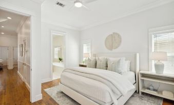 2nd Floor: Master Bedroom (1 King) w/ En Suite Bathroom and Private Balcony, Left Bedroom (1 King), Right Bedroom (1 King), Hallway Full Bathroom, Laundry Room