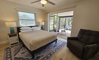 The Rotonda Retreat is a spacious fully renovated home which has been lovingly designed and furnished with your comfort in mind. This home is 1700sq ft single-story and has a split bedroom layout with access to the back lanai/pool area from 2 bedrooms in addition to the kitchen/dining area. There is LOTS of natural light thanks to the large sliding doors and windows throughout and a NEW AC system to keep everyone cool and comfortable! Also all bedrooms have NEW quality ‘hybrid’ mattresses/sheets/linens/pillows for your comfort. The lanai has plenty of outdoor furniture and a NEW 5 burner grill!