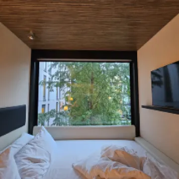 Большая проблема в том, что до этого отеля на машине не добраться. Рядом со входом нет нормальной зоны высадки. Пешеходная зона перед отелем вымощена булыжником, что очень неудобно, если вы приезжаете с большими чемоданами. У них есть подземная парковка примерно за 19 евро в сутки, но оплата по времени не предлагается. Если вы приезжаете на машине во второй половине дня, парковка на улице или в общественных гаражах поблизости — более дешёвый вариант. Сам отель всегда отличный. Мне нравится бренд CitizenM. Всегда чисто, всегда свежо, всегда приятная атмосфера и дружелюбный персонал.