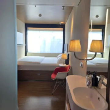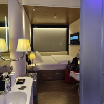 Расположение отеля превосходное: в пешей доступности от набережной и популярных торговых улиц. Номер небольшой, ведь это Европа, но продуман так, чтобы всё было удобно и не создавалось ощущения тесноты или неудобства. Умные технологии позволяют управлять всем с iPad. Поэтому отель компактный, но при этом удобный, особенно для тех, кто путешествует в одиночку. Кстати, BT, приятный персонал и чистая зона ресепшена, которую называют гостиной для общения.