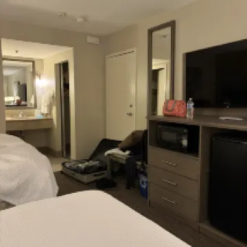 Ответ от объекта размещения: Your business is incredibly important to us, and we truly value your feedback. Our hotel is conveniently located next to the 60 Freeway and we are sorry to hear that the noise from the freeway impacted your stay. We're glad that you found the complimentary earplugs we provide helpful. We hope you will visit us again soon.