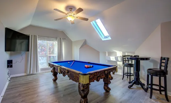 Living room is furnished with two custom three seater leather couch. Kitchen is fully equipped with all the essential and coffee for your convenience. Upstairs, Independent Game room has a full size pool table and 65 inch TV with Xbox for ultimate gaming experience! Deck with direct access to Lake Ray Hubbard.