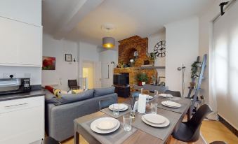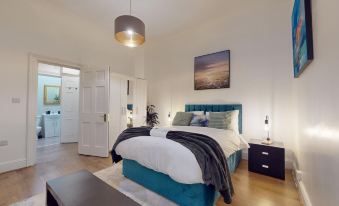 Upon entering our flat, you'll be greeted by a cosy open-plan living area with unique original features, beautifully decorated with contemporary furnishings and a fully-equipped kitchen ready for you to whip up delicious meals, or sit around the dining table for 6 with a local takeaway.