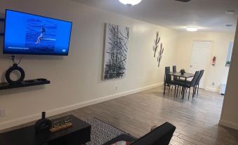 Create cherished family memories in our unique home. This house is equipped with 2 beautiful bedrooms and 1.5 beautiful bathrooms. This house can sleep up to 7 people. This house has a total of five TVs and unlimited Wi-Fi along with a fire stick that shows unlimited channels. Just 4 minutes away from the airport, 10 minutes away from the downtown, Palm Beach, and a quick 10 minute drive to the pristine beach. Step outside to find an extraordinary outdoor bar with TVs and breathtaking views. This area is also equipped with a buzzing restaurant district. The backyard adorned with palm trees, set a serene scene. Spacious bedrooms, ensure everyone’s comfort. Enjoy Florida’s delightful weather as your constant compassion, while exploring, relaxing, or hitting the sun and surf. About pets:Pets allowed: limit 3 total.About checkOut:Check out before 11:00 AM.About children:Children allowed: ages 0-17.About checkIn:Check in after 4:00 PM.About smoking:Smoking is not permitted.About minBookingAge:Minimum age to rent: 18.About events:Events allowed: family gatherings, birthday parties, weddings.Maximum event attendees: 7.