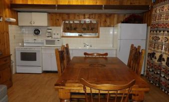Our cabins are rustic log on the outside and as comfortable as home on the inside with kitchens that include everything from the stove, refrigerator, microwave and coffee pot down to the cookware. Three bedrrom (sleeps 10) 2 full bathrooms. We also furnish your linens, towels, blankets. Come and enjoy our cozy atmosphere, heaters, cable TV and roaring fire on cool evenings (firewood NOT provided). A/C in living room