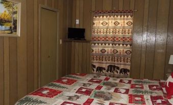 Cabin 11 has a full kitchen, living room with a wood burning fireplace, 2 full bathrooms, 3 bedroom 1 king bed, 4 queen beds sleeps 10 people, charcoal barbecue grill, and large front deck. We are less than a mile from Midtown and 3.5 miles from The Inn of Mountain gods. We have a trail that walks down to the Rio River and Two Rivers park.