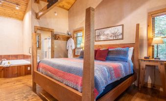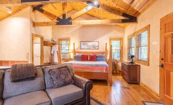 This gorgeous mountain hideaway accommodates 2 guests. The bedroom is on the main level of the home and is fitted with a king-size bed.