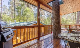 The exterior area of this home boasts gorgeous views and unrivaled privacy. A deck leading from the cabin out to tall pines, allowing you to appreciate the breathtaking views from this exclusive cabin. Lounge in the sun on your viewing deck, or enjoy a quaint seating area and BBQ are situated on the deck of this lovely home for use during your stay.