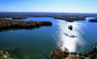 Potato Lake can turn green during certain times of the year, and there is no beach area. Swimming from the dock may not be ideal, but the water clears up as you venture deeper. It's perfect for boating and fishing. You can take advantage of our kayaks and paddle boards to reach the nearby island for a relaxing adventure.About pets:No pets allowed.About children:Children allowed: ages 0-17.About smoking:Smoking is not permitted.About events:No events allowed.