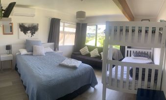 Take a 2 minute Stroll from this spacious holiday home to beautiful Tapeka Beach for swimming, kayaking (kayaks provided), sun or a spot of fishing.