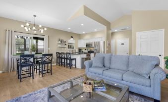This cottage boasts 2 inviting bedrooms with 2 new twin XL beds in each. The cozy living room features an additional high end queen inflatable mattress bed for extra comfort. Guests can unwind in the peaceful atmosphere of this marvelous property, complete with a new electric heat-producing fireplace, new TVs in each room with free YouTubeTV, Echo Show for music and entertainment, large outside 4-burner stainless grill, very comfortable screened in patio with hanging egg chairs, small indoor putting green and a TV. A walk across the street you will find the pro shop, Hook Cafe and the Trophy room Bar and Grill. Rounding out all the activities and offerings is pickle ball, fitness room, outdoor pool area and basketball. With amenities like washer and dryer, bedroom TVs, well appointed kitchen with oils, spices, Kuerig and much more, your stay here will be nothing short of wonderful.