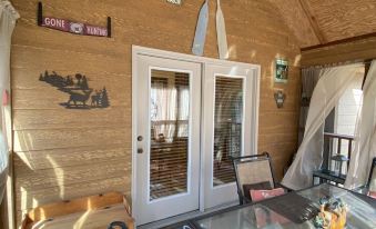 You can also enjoy dinner on your private screened in porch. The porch has 2 separate seating areas to provide full family accommodations for up to 6 guests. Enjoy dinner outside with your family with access to the screened in porch directly off the cabin. Pull your sheer curtains for more privacy and enjoy a more cozy experience.