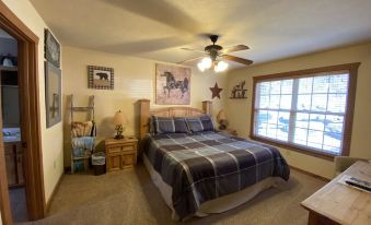 One of the best places we have stayed at with VRBO. Shared this cabin with friends for the week. Perfect 2 master bedrooms king beds with 2 master bathrooms ensuite. Each room had its own temperature control for ac / heater. Cabin was in nature and yet close to Branson shows and very close to silver dollar city. Kitchen had everything you needed, living room roomy for hanging out, easy instructions for door lock for entry & exiting. The screened in porch was a favorite while sipping morning coffee and relaxing in the evening with a glass of wine. Beautiful birds in the trees serenading us daily. Beds were comfy and appreciated the 3 ring binder with all the info you needed. Great wifi connection and roomy dining table for 6. will be back with this incredible cabin and A host.