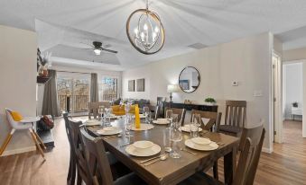 ☀ Cozy dining room with seating for 8 (+ 2 bar top seats) aside a fun mural!