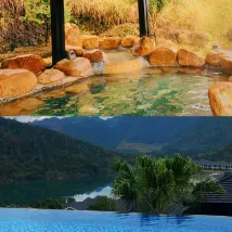 Расположен недалеко от гор и рек, в отеле хорошая обстановка, номера чистые, обслуживание очень внимательное. Горячие источники хорошо спрятаны, со множеством бассейнов для купания. Горячие источники открыты до 24 часов. Еда в китайском ресторане вкусная, а ночью устраивают барбекю, что просто потрясающе. Завтрак также хорош, в том числе суп из свиных субпродуктов, лапша из свиной рульки и лапша из говяжьей грудинки. В период первомайских праздников организуются бесплатные мастер-классы по изготовлению нематериального культурного наследия Яо.