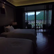 Я очень рад, что выбрал отель Ruyuan Oriental Hot Spring. Пейзажи красивые. То, что вы видите на фотографиях, это то, что вы видите своими глазами. Сервис внимательный, еда вкусная. Кроме того, овощи и куры из окрестных фермерских домов очень вкусные.