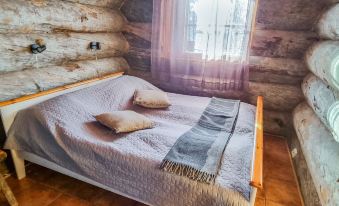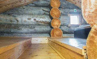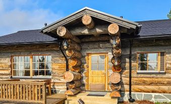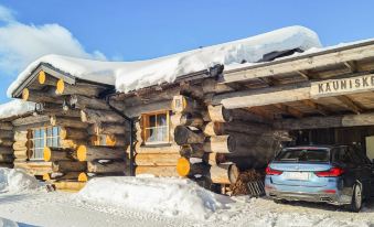 Silver log cabin in Kaunispään Etelärinne II area 2,3 km from the center of Saariselkä. Kitchen-living room, 2 bedrooms, one with a double bed and other with 2 beds, loft (steep stairs) with 2 matteresses, electric sauna, shower room and toilet.