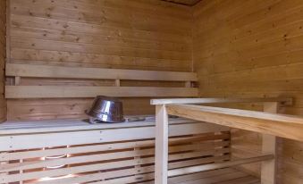 The apartment's kitchenette has its own corner, with all the necessary utensils and equipment for cooking. The fireplace in the living room creates a cosy atmosphere for socialising. The apartment has its own terrace.