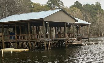 Relax by the fire pit. Enjoy the boathouse w/ 2 floating docks, swing, picnic table, fish cleaning station. Hang out in the expansive outdoor kitchen with griddle, grill, fryer, burners, refrigerator, smart TV & sound system. Large yard with plenty of parking. This 3 bed/2 bath house is in a quiet neighborhood with plenty of room for the entire family. Sleeps 9.(Launch dependent on water level)About pets:No pets allowed.About checkOut:Check out before 10:00 AM.About children:Children allowed: ages 0-17.About checkIn:Check in after 3:00 PM.About smoking:Smoking allowed: in designated areas.About minBookingAge:Minimum age to rent: 18.About events:No events allowed.
