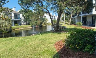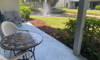 This spacious 2 bedroom 2 bath ground floor condo w/marvellous view of the lagoons, fountains & the lovely grounds surrounding them. Take advantage of the amenities: large pool, hot-tub, tennis courts & private boardwalk leading to St. Augustine's magnificent white sandy beaches. Enjoy the indoors with the comfortable of fully equipped kitchen, cable TVs, & internet.