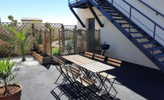 Ближайший аэропорт — Аэродром Карпике, расстояние до него составляет расстояние от отеля на машине: 30,7км (около 34 мин).Как добраться до La Rose des Vents" duplex apartment with sea view and Arromanches pontoons из ближайшего аэропорта?