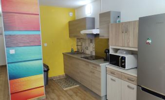 I invite you to stay in a F2 Well equipped with a separate room with a bed for 2 people and a living room. Small terrace