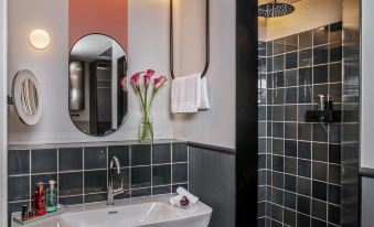 Nice designed room, very stylish with an open bath & shower (suite at the top). BUT, the room has a very loud ventilation which cannot switched out. This was very annoying during night. Therefore, I would nood book again this room. The Staff of the Hotel was very friendly!