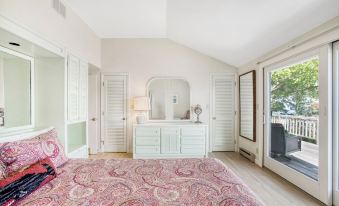 Also on the first floor is a full bathroom with a toilet, vanity sink, and mirror for your family's convenience. Next to this bathroom is another queen bedroom with a pillow-top mattress and a beautiful fabric headboard, two nightstands with lamps, a dresser, and two closets, it will put you right to sleep after a long day of exploring. This bedroom also has a large flat-screen TV mounted on the wall with cable and a DVD/Blu-ray player for those who enjoy a little television before sleep. Don't forget to open a window before dozing off to the sounds of the sea can bring you dreams of adventures on the high seas.