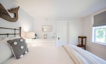Moving off the kitchen lies the living room which has a large sectional couch, windows facing the harbor, shelves filled with books and games, two end tables, a rocking chair, and a flat-screen television with cable and a DVD/Blu-ray combo. After a day of exploring the local beaches, visiting the art galleries, and picnicking at the Marshall Point Lighthouse, this room is perfect for the family to gather, relax, and reflect on the excitement of the day.
