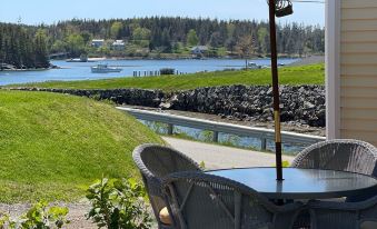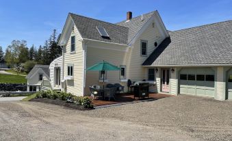 Upon arrival at your new home-away-from-home you’ll pull into a wraparound driveway, where there is ample parking for any additional guests you have invited as well as a 4-car garage. If you’ve had a long drive, your first stop may be the carpeted patio area located near the driveway entrance, a quiet stop to take in the sounds of the ocean and the wilderness view from the back of the house. Complete with a table and chairs, you may find yourselves enjoying an outside meal here during your stay. It is also an ideal place to watch family and friends play yard games such as croquet, bocce ball, ladder ball or beanbag toss (all provided as part of your rental). Artists and photographers will be inspired. This is a village that naturally brings out the desire to create, and to capture the wonders of ocean life and the fishing community. The boathouse across the way is an added bonus for those intrigued by how things work. When in residence you can catch fishermen doing gear work and other prep before going out to haul.