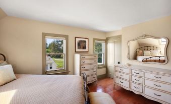 The first bedroom has a queen-size bed with a harbor view. It has a night table with lamp, closet and 3 cushioned chairs perfect for reading or relaxing while taking in the view. If you crack your window at night the sounds of the water will lull you into a wonderful night’s rest.
