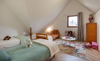 Nous sommes un groupe d'amis de 10 personnes, dont 2 personnes seules. Les chambres sont parfaites car 5 équipées de lits double, et 2 de petits lits. 2 WC, 2 salles de bain. Parfait.