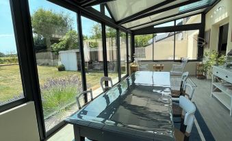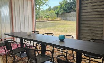 La déco est top ; il ne manque rien dans la cuisine, et le coin petit-déj dans la salle à manger est juste génial. Tout est bien pensé. Le terrain est bien entretenu. Petite terrasse avec salon de jardin, vélos à disposition, on ne peut rêver mieux. Possibilité de rando en partant du gîte ; C'est Top !