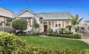 This light filled Californian Bungalow, centrally located on the Bellarine Peninsula only a 10 minute drive to Portarlington. The front half of the property is original with high ceilings and boasts a large modern extension at the rear, and is located within a 15 minute walk to shops, beach & local pub. This property sleeps 9 people across 4 bedrooms, includes 2 separate lounge rooms, a generous kitchen and functional kitchenette, plus outdoor dining options.About pets:No pets allowed.About checkOut:Check out before 12:00 PM.About children:Children allowed: ages 0-17.About checkIn:Check in after 2:00 PM.About smoking:Smoking is not permitted.About minBookingAge:Minimum age to rent: 18.About events:No events allowed.