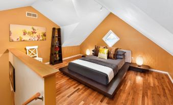 The 3rd floor in unit 1 is a large bedroom suite with a king bed, sofa and private bath.