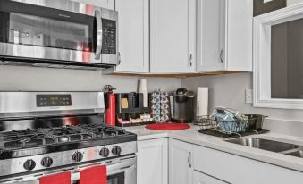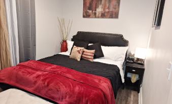 Kick back and relax in this calm, stylish, and comfortable one bedroom suite. This property is a unique newly updated 4plex building that houses 4 different separate units. The property has NEW fresh paint, flooring, appliances. keyless locks, 24/7 Surveillance, and WiFi access. Your unit will be comfortable and conveniently located to local restaurants, businesses, gas stations, grocery stores, and shops. Pick up or have food delivered to you or choose to stay inside to unwind with options to watch wifi streaming services or movies on the Roku television. Guests have complementary snacks and beverages (water and coffee). Guests will have the option of cooking your own meals and serving them with seasonings, Pots, pans, bowls, plates, cups, coffee Makers and Utensils are on site that are provided and stored in the kitchen cabinets for guests to use during their stay. Fresh towels, sheets, and bed linen are placed on all beds. A full sized rollaway bed is placed in the living room closet for a party of more than 2. There is also a sofa bed in the living room for guests.