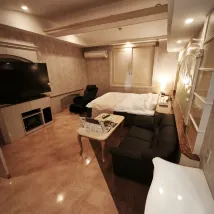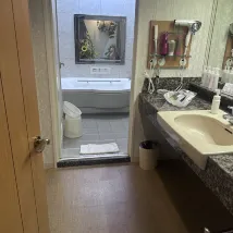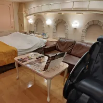Номер был отлично укомплектован: пижама, разнообразные косметические принадлежности, телевизор, массажное кресло и джакузи. Проблема возникла с заселением: пришлось долго ждать появления персонала, и сотрудники не владели английским языком. Оснащение номера довольно интересное.