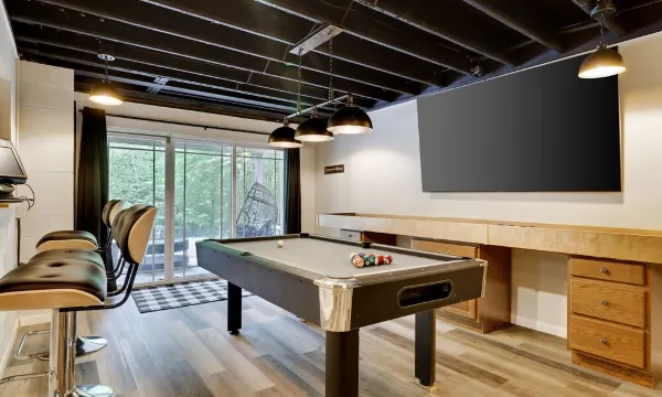 This beautiful home is will be the talk of your next vacation up here in the Poconos! Just two hours from NYC and Philadelphia, Indian Rocks is a quiet community located just across from Lake Wallenpaupack!! Bring your boat, jet skis, kayaks, canoes, and launch right across the street onto this 52 mile lake with great fishing, party cove and lots of water fun! Located just 30 minutes from Montage Mountain ski Resort, every winter booking gets a 20% discount code.Walk into the stunning game room area complete with bar, 1/2 bath, arcade games, pool table and more!! Great space to hang out with the family.