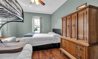 Parking is limited to the driveway of the home. There is no street parking. With care, five cars can be parked without anyone being blocked. Additional cars could be parked down the driveway, but they will block everyone else from being able to leave. Please contact us if you have questions about parking.About pets:No pets allowed.About checkOut:Check out before 10:00 AM.About children:Children allowed: ages 0-17.About customRules:The number of guests staying overnight at the property must not exceed the number of guests the reservation was made for..About checkIn:Check in after 3:00 PM.About smoking:Smoking allowed: in designated areas.About minBookingAge:Minimum age to rent: 18.About events:Events allowed: family gatherings and birthday parties.Maximum event attendees: 35.
