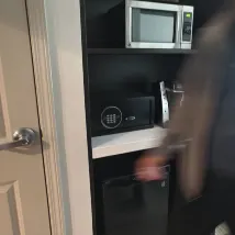 好的是,很新,現代,乾淨,服務響應快速,保修保險櫃不能使用後,立刻有人維修,免費停車。鎮上商家不多,旁邊有麥當勞,in n out不推薦。