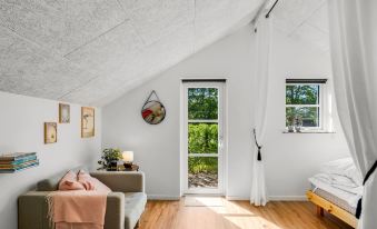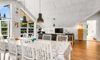 Single-family house, built in 2021. 1.3 km from the sea. For shared use: garden. Private: natural state property 1'248 m2, garden (fenced). Barbecue, children's playground (swing). In the house: washing machine, tumble dryer. Parking at the house. E-charging station. Grocery 4 km. Golf course 6 km. The owner does not accept any youth groups. "Roska" - 1.3km from the sea", 4-room house 166 m2. Object suitable for 8 adults + 1 child. Living room with TV and radio. 1 room with 1 double bed. 1 room with 1 double bed. 1 room with 1 double bed. 1 room with 1 double bed. Kitchen (oven, dishwasher, 4 induction hot plates, microwave, freezer). 2 showers/WC. Facilities: children's high chair, baby cot. Internet (WiFi). Please note: non-smokers only. Maximum 1 pet/ dog allowed. 849-82988